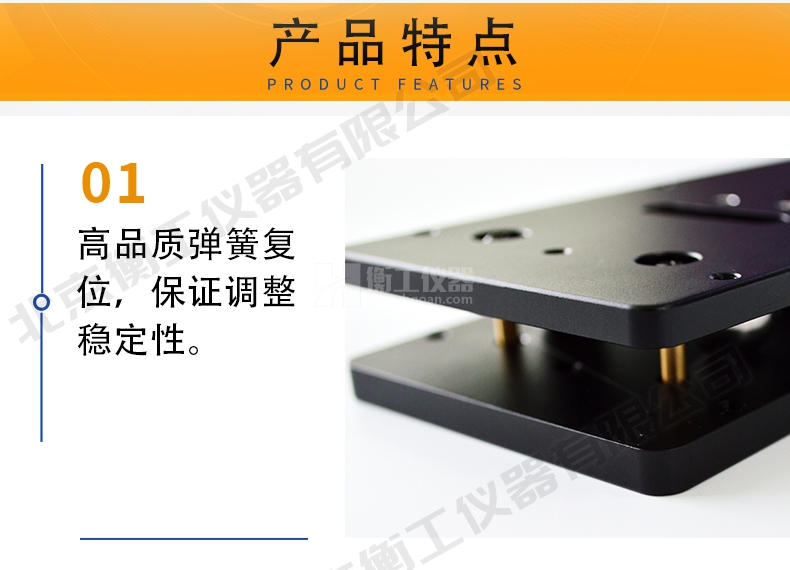 1.提供單軸傾斜調(diào)整,高品質(zhì)彈簧復(fù)位,保證調(diào)整穩(wěn)定性;