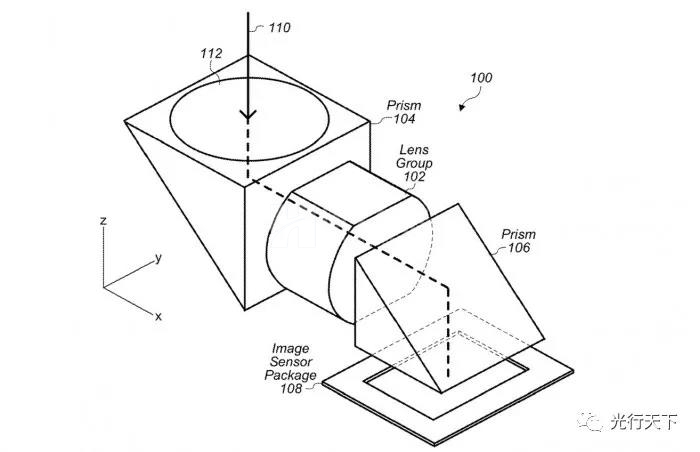 在美國專利和商標(biāo)局周二授予一項(xiàng)名為"帶有移動(dòng)光學(xué)元件致動(dòng)器的折疊式相機(jī)"專利中,蘋果公司提出了一些在設(shè)備中包含折疊式光學(xué)元件和鏡頭移動(dòng)的方法。在各種實(shí)施方案中,蘋果建議該系統(tǒng)可以由兩個(gè)棱鏡組成,在這對(duì)棱鏡之間有一個(gè)由多個(gè)元素組成的鏡頭組。棱鏡將光線沿軸線引向成像傳感器,而鏡頭組則處理各種光學(xué)功能。