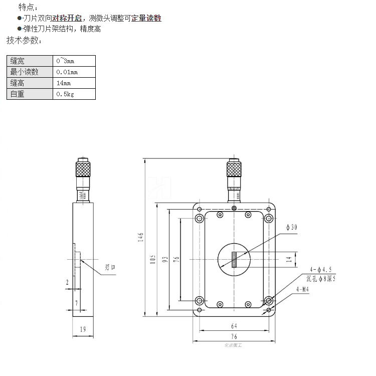 雙開啟多開啟狹縫手動側(cè)微頭可調(diào)式讀數(shù)狹縫光闌平口HGMAS403